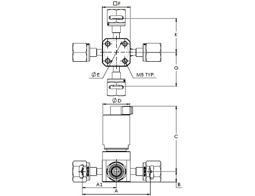 HM Series, Low Pressure UHP Actuated 4 Port Valve, Swivel Female 1/4”