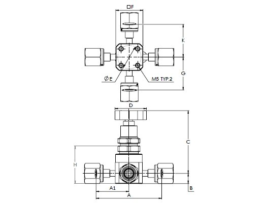 HM Series, Low Pressure UHP Manual 4 Port Valve, Swivel Female 1/4”